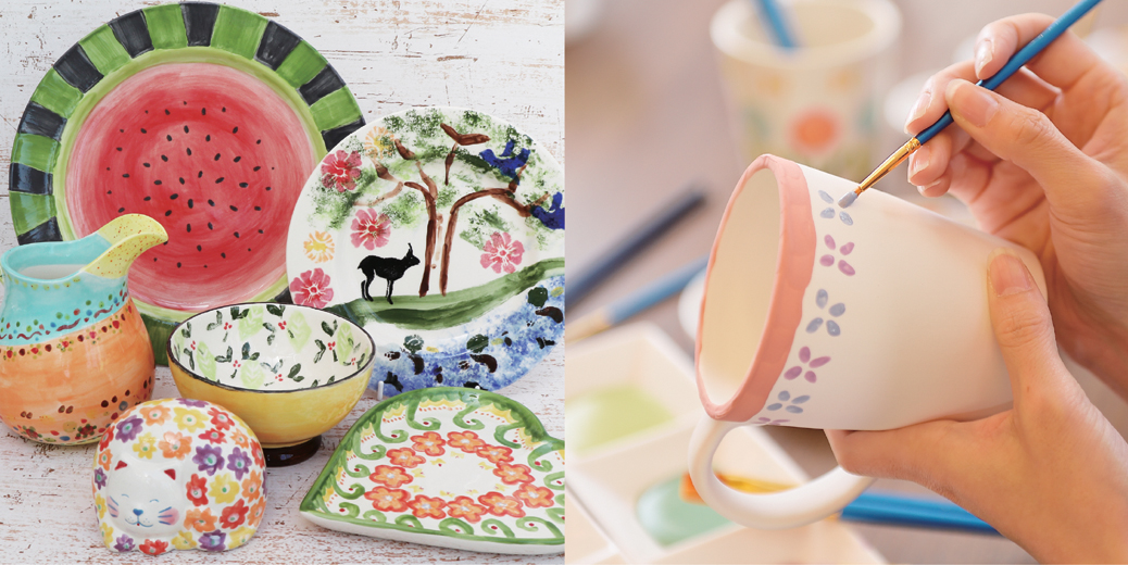 クラフトハウスのガラスと陶の体験工房で遊び、こまもの屋 箱根では厳選された箱根の逸品と出会えます。